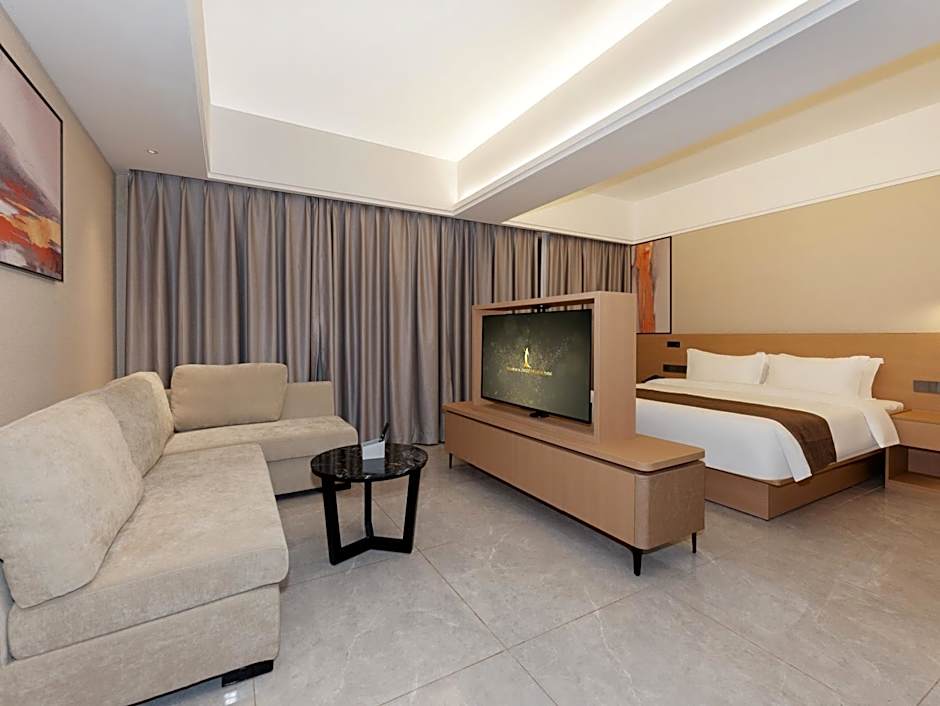 JD POLMAN Hotel in Phnom Penh blends five-star flair with laid-back leisure. A seasonal outdoor rooftop infinity pool awaits guests of all ages, offering a sun-kissed vantage point above the city. On-site Panda Restaurant serves Modern Chinese cuisine for a relaxed dinner, while options like a balcony, patio, and garden spaces provide breezy spots to unwind with mountain views and beach chairs for a lazy afternoon.