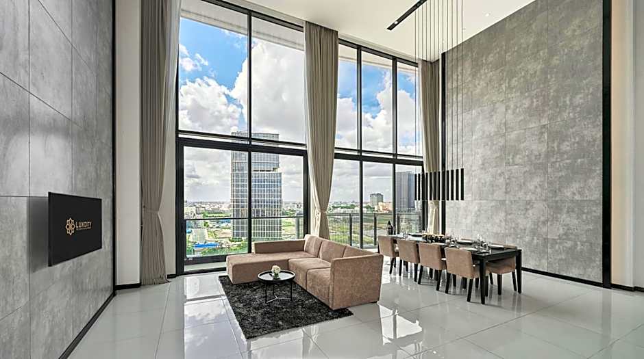 The Luxcity Hotel & Apartment offers a variety of room types including Studio Twin, Deluxe Classic, Deluxe Premium, Executive Residence, Duplex Suite, and Studio Queen. These rooms can accommodate between 2 and 6 adults, with some also allowing for 1 child. All rooms are non-smoking and the bed sizes range from twin beds to king size beds, with some rooms also including sofa beds.