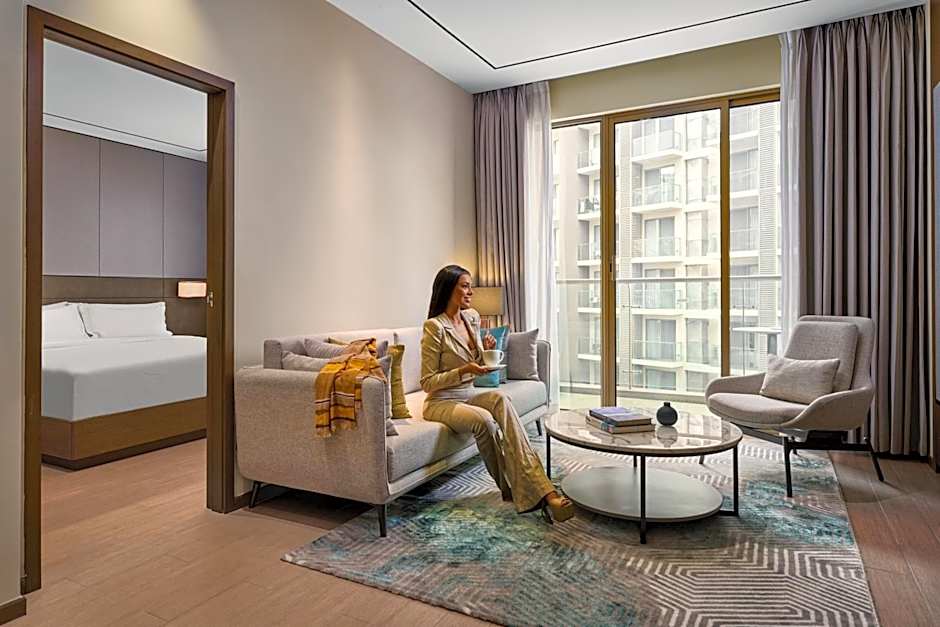 The hotel offers a variety of room types including One Bedroom Deluxe Apartments, Studio Deluxe Apartments, Two-Bedroom Apartments, Two Bedroom Deluxe Apartments, and Deluxe Double Rooms. All rooms are non-smoking and accommodate either 2 or 3 adults with no children. Bed sizes include King size beds, Twin beds, or a combination of both. Room sizes range from 344 sqft to 1001 sqft.