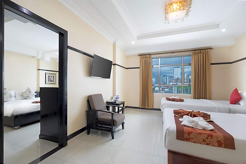 Featuring free toiletries, this family room includes a private bathroom with a bath, a hairdryer and slippers. The spacious air-conditioned family room features a flat-screen TV with cable channels, a mini-bar, a seating area, a wardrobe as well as city views. The unit has 3 beds.