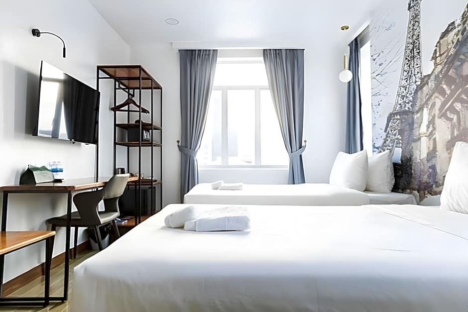 Welcome to our Superior Queen Room 72 ft² with a city view. Enjoy twin beds, Enjoy sports channels on the smart TV 43inches, free toiletries, a shower, bidet, and slippers. Stay entertained with cable channels on the TV and make use of the refrigerator and safe. Upper floors are easily accessible by elevator, and towels are provided. Relax in the sitting area, charge your devices with the socket near the bed, and stay comfortable with air conditioning.