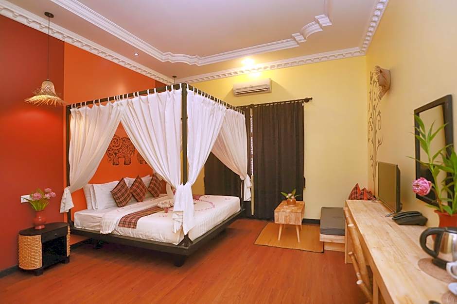 Air-conditioned room come with tiled or wooden flooring, a safety box, writing desk, wardrobe, seating area, small fridge, bathrobes and a TV are also included. The private bathroom offers shower facility, hairdryer and free toiletries. Benefits include: - Free bus station pick up by tuk tuk (Only in Siem Reap) - Free 2 bottles of water daily - Complimentary coffee and tea in the room - Complimentary welcome drink and cold towel upon arrival - Offer 20% off massage service - Offer happy hour buy 2 get 1 free at pool side - Daily clean room - Free Wifi - Free big Parking Space - Free Swimming Pool - Complementary 2 hour early check in or late check out ( Subject to room available ) - Complimentary honeymoon or birthday set up (please provide details in advance using the Special Requests box available)