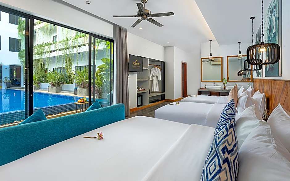 On-site Restaurant #1 serves American, Cambodian, and Asian cuisines in a setting described as family-friendly, modern, and romantic. After a day of exploring Siem Reap, unwind at the outdoor saltwater pool reserved for adults, with private parking and free Wifi helping to keep plans carefree.