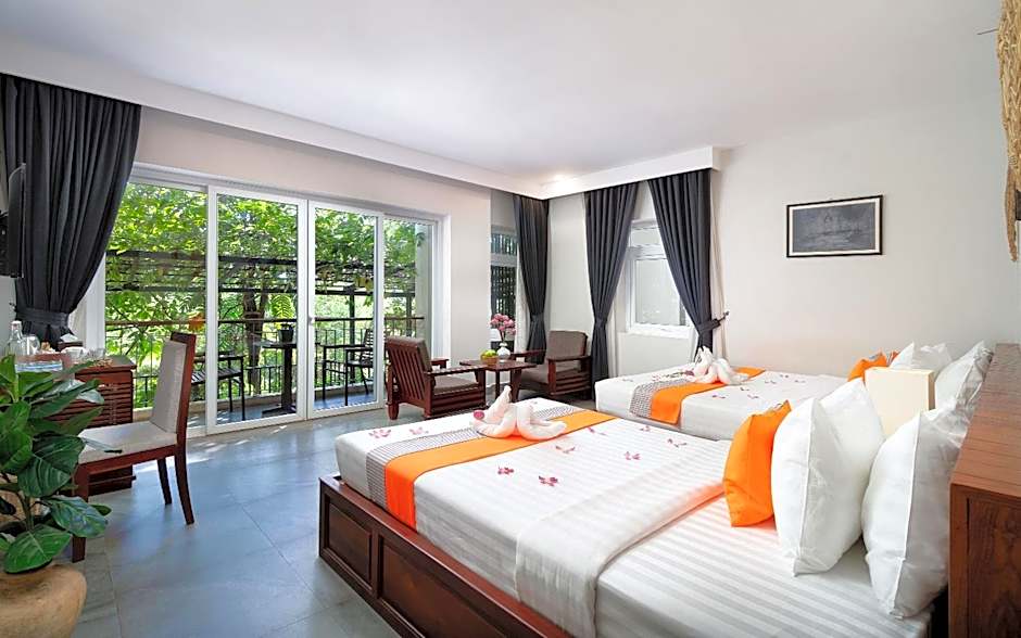 This family room has seating area. The-private bathroom includes shower facilities, a hairdryer and free toiletries. This room offers: - Free bus station pick up by tuk tuk (Only in Siem Reap) - Free 2 water bottles daily - Complimentary coffee and tea in the room - Complimentary welcome drink and cold towel upon arrival - Offer 10% off on massage service - Offer a happy hour buy 2, get 1 free at pool side - Daily clean room - Free Wifi - Free Parking Space - Free Swimming Pool - Complimentary honeymoon or birthday set up