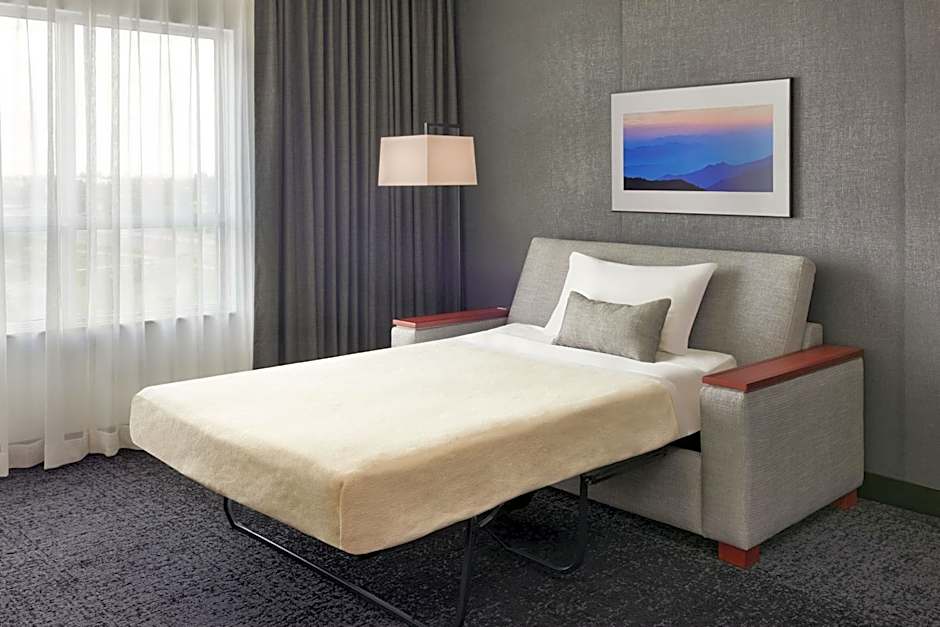 The Courtyard by Marriott Calgary Airport offers a variety of room types including double rooms, studios, suites, and family rooms. The rooms range in size from 355 sqft to 700 sqft, with the largest being the One-Bedroom King Suite. Smoking is not allowed in any of the rooms. The rooms accommodate between 2 and 4 adults, and 1 to 3 children, with bed options including king size beds, queen size beds, and sofa beds.