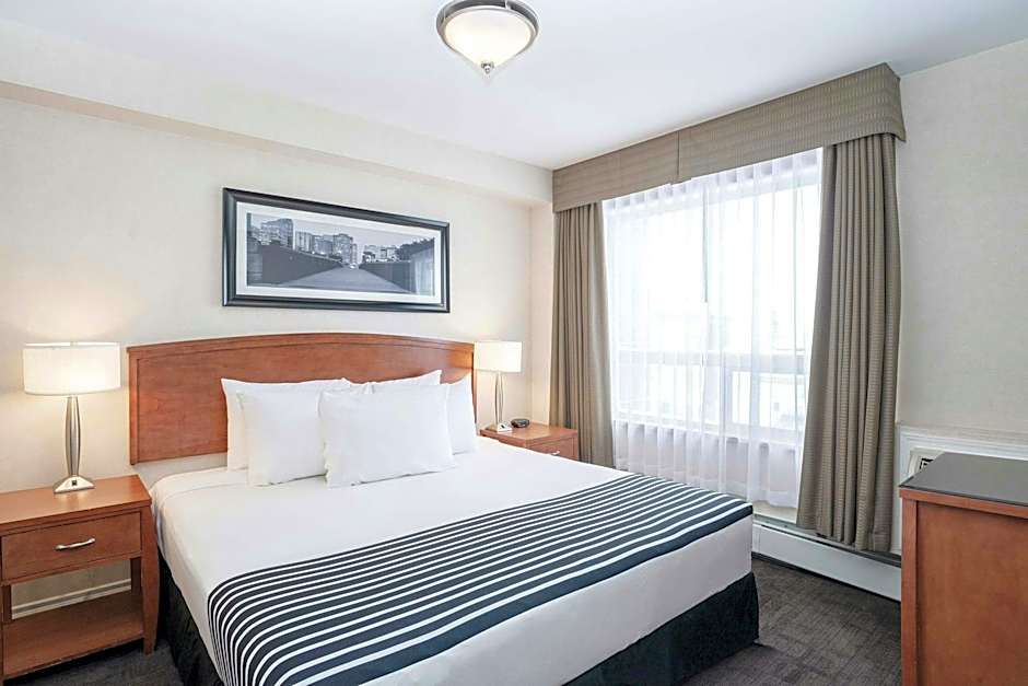 Book your stay at Sandman Hotel & Suites Calgary West and enjoy the perfect blend of comfort, convenience, and adventure. With a variety of room types available, accommodating up to 4 adults and 3 children, there's plenty of space for the whole family. Each room is equipped with modern amenities to ensure a comfortable stay. And with prices starting at just $101, you can experience all that Calgary has to offer without breaking the bank. So pack your bags and get ready for an unforgettable stay at Sandman Hotel & Suites Calgary West.