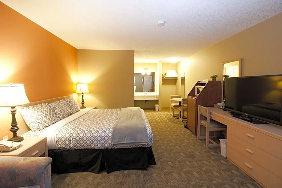The Bow River Inn offers a variety of room types including suites and double rooms. Smoking is not allowed in any of the rooms. The rooms accommodate between 2 to 6 adults and have bed sizes that range from queen size to king size. The sizes of the rooms vary from 97 sqft to 1076 sqft.