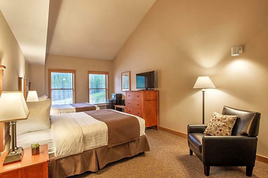 The Fairmont Hot Springs Resort offers a variety of room options, including Economy Double Rooms, Queen Rooms with Pool View, Deluxe King Rooms, Double Rooms with Patio, Superior Queen Rooms, Double Rooms with Balcony, Queen Rooms with Garden View, Superior Family Rooms, Deluxe Queen Rooms, and Two-Bedroom Chalets. Smoking is not allowed in any of these rooms. The rooms range in size from 269 sqft to 495 sqft and can accommodate varying numbers of adults and children, from 2 adults and 1 child to 6 adults and 3 children. The bed options include double beds, queen beds, twin beds, bunk beds, and king beds.
