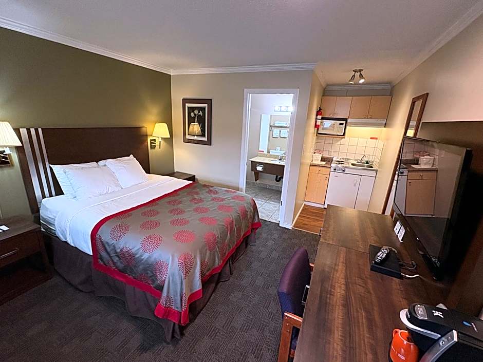 The seasonal outdoor pool is heated and features a shallow end, with an adults-only policy for a quiet moment after a day of exploring Grand Forks. The setting offers mountain views and garden scenery, enhanced by a location about from the city center. Breakfast and on-site dining at Restaurant #1 provide easy options, while pets are welcome with extra charges for added flexibility.