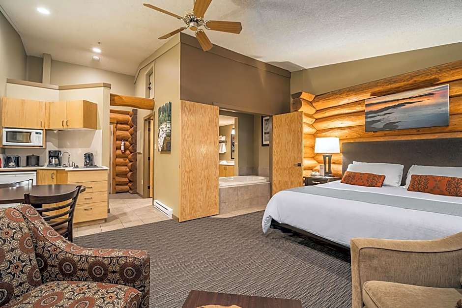 This room features a kitchenette and seating area. A flat-screen TV with cable is provided.