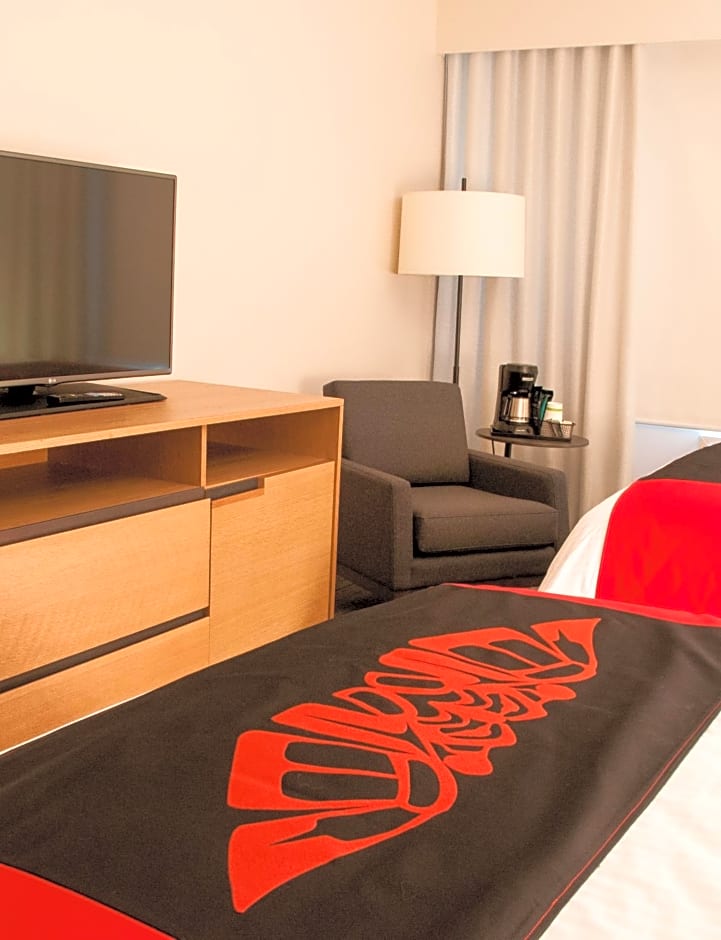 This room offers a flat-screen TV, black out blinds, a mini refrigerator, in-room climate control, in-room safe and free WiFi.