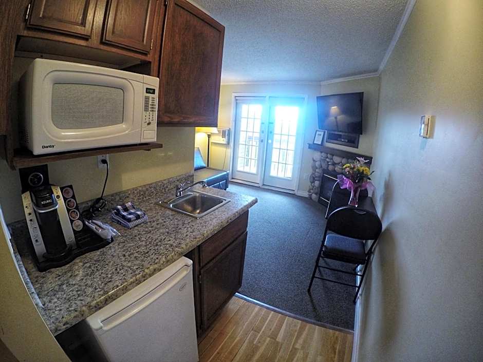 Guests will have a special experience as the suite features a fireplace. Featuring a private entrance, this air-conditioned suite consists of 1 living room, 1 separate bedroom and 1 bathroom with a bath or a shower and a hairdryer. The well-fitted kitchenette features a refrigerator, kitchenware, a microwave and a toaster. Boasting a balcony with mountain views, this suite also provides a tea and coffee maker and a flat-screen TV with cable channels. The unit offers 1 bed.