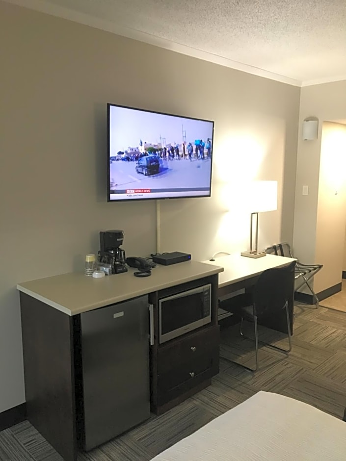 Boasting a private entrance, this air-conditioned suite comes with 1 living room, 1 separate bedroom and 1 bathroom with a bath and a shower. The well-equipped kitchenette has a stovetop, a refrigerator, kitchenware and a microwave. The suite features a flat-screen TV with cable channels, soundproof walls, a tea and coffee maker, a seating area as well as city views. The unit has 2 beds.