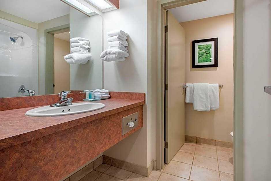 End the day in the indoor heated pool complex, featuring a waterslide and a kids’ pool, with a free fitness center nearby for a quick workout. For events or business needs, meeting and banquet facilities are available (fees apply). In-room comforts include air conditioning, elevator access, kitchenware, and free toiletries to ease every stay.
