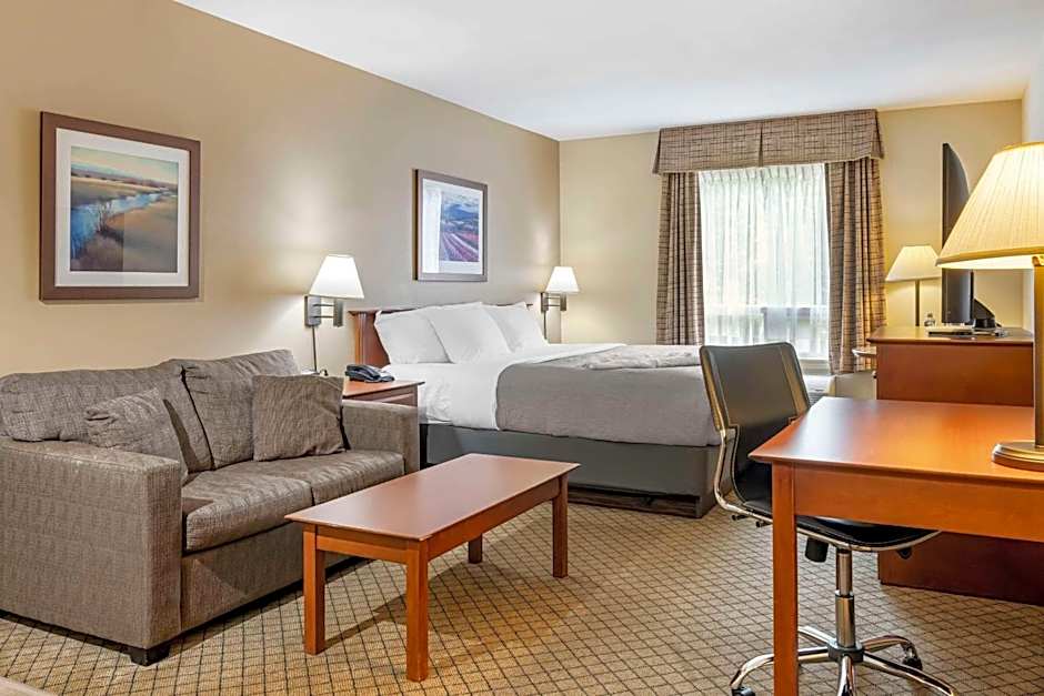 The Quality Inn Airport Dieppe offers a variety of room types including Queen Rooms, King Rooms, and Family Rooms. All rooms are non-smoking and have a size of 312 sqft. The Queen Rooms can accommodate 2 adults and 1 child, while the King Rooms and Family Rooms can accommodate 3 adults and 2 children. Bed sizes range from Queen size to King size, with some rooms also featuring a sofa bed or hot tub.