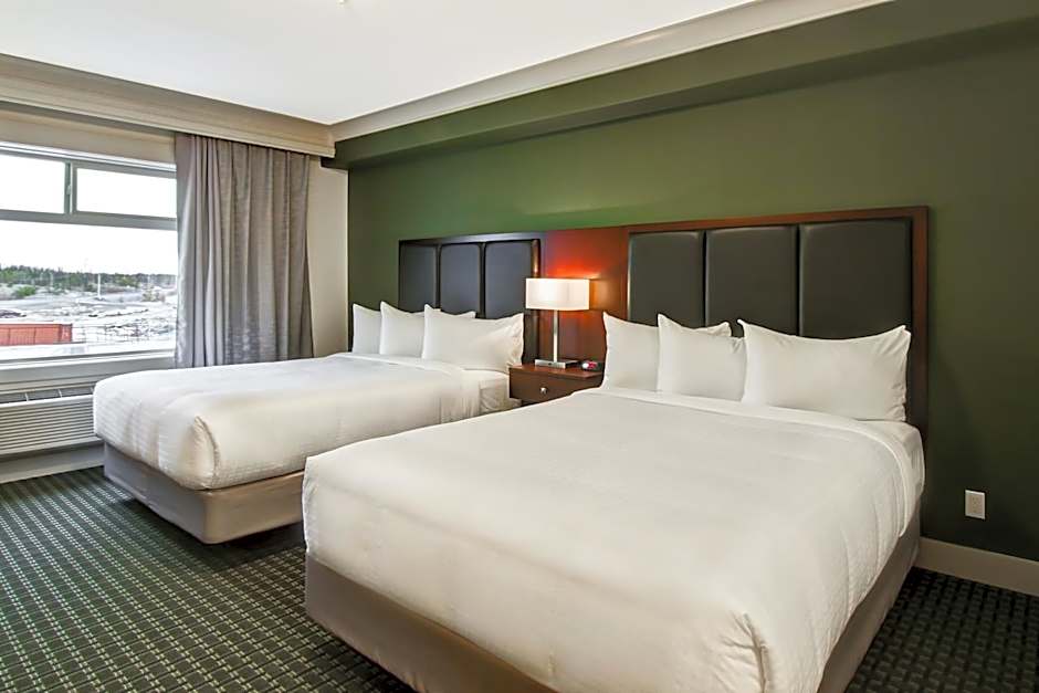 Chateau Nova Yellowknife offers a Standard King Room, which accommodates 2 adults and 1 child. The room size is 398 sqft, and smoking is not allowed. There is 1 King size bed. Another option is the Queen Room with Two Queen Beds, which accommodates 4 adults and 3 children. It has the same room size, does not allow smoking, and offers 2 Queen size beds.