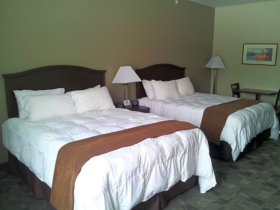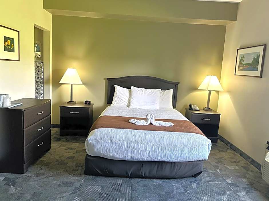 The Midland Inn & Suites offers a variety of room types including suites and double rooms. The Executive King Suite with Sofa Bed is the largest room at 495 sqft and can accommodate 4 adults and 3 children. Smoking is not allowed in any of the rooms. The standard double rooms and deluxe double rooms both feature two queen size beds and can accommodate 4 adults and 3 children. The Queen Room with disability access has one queen size bed and can accommodate 2 adults and 1 child.