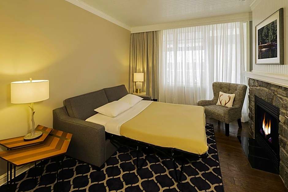 This spacious studio offers an open living area with a sofa bed, fireplace, and a flat-screen TV. A private balcony with resort views is included. Please note that guests will have no access to the private balcony from November until April.
