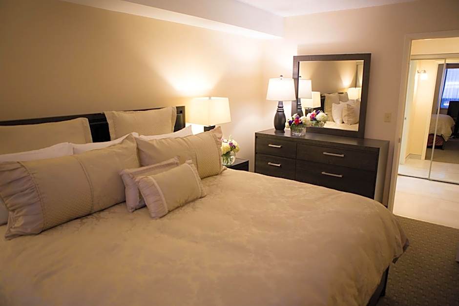 This suite offers a separate bedroom and a full kitchen with a stovetop, microwave, full-size refrigerator, cookware, dishes, utensils and a coffee/tea maker. There is a combined dining and living room with a double sofa bed. Guests will also find a private balcony. For added convenience, the suite contains a hair dryer, an iron and an ironing board.