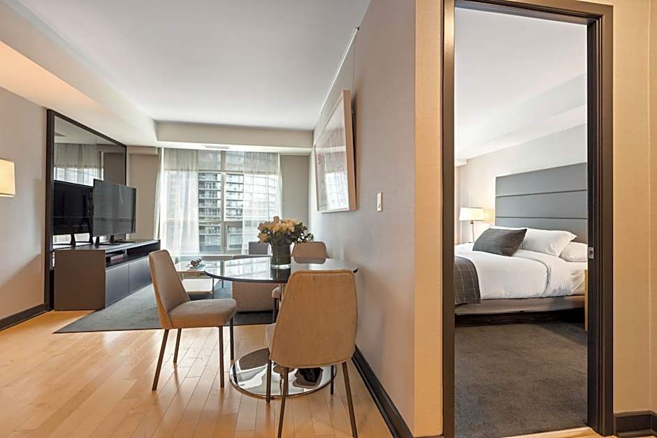 Take in Downtown Toronto’s bustling streetscape from the comfort of your suite, relax in the separate bedroom with a king-size bed and luxurious Italian Frette linens, and stretch out in 595 square feet of space: welcome to SoHo Hotel’s Corner Executive Suite.