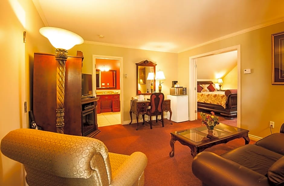 This suite has a bathrobe, DVD player and fireplace. An HD flat-screen TV with digital cable is also included.