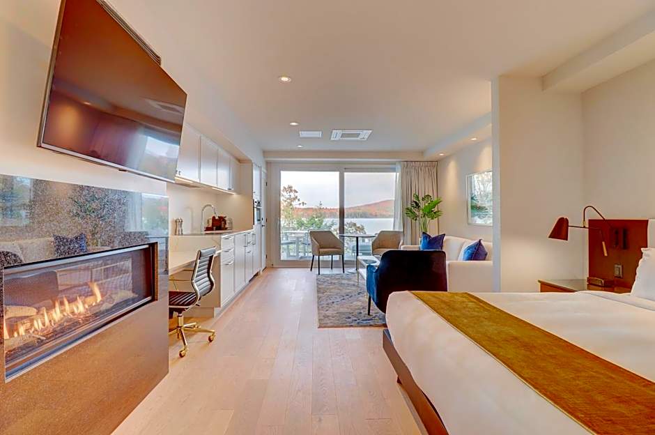 The fireplace is the standout feature of this suite. This spacious suite comes with 1 living room, 1 separate bedroom and 1 bathroom with a shower and free toiletries. Guests can make meals in the kitchen that features a stovetop, a refrigerator, a dishwasher and kitchenware. The air-conditioned suite features a flat-screen TV with cable channels, a washing machine, a tea and coffee maker, a seating area as well as lake views. The unit has 2 beds.