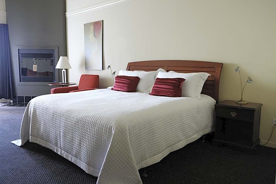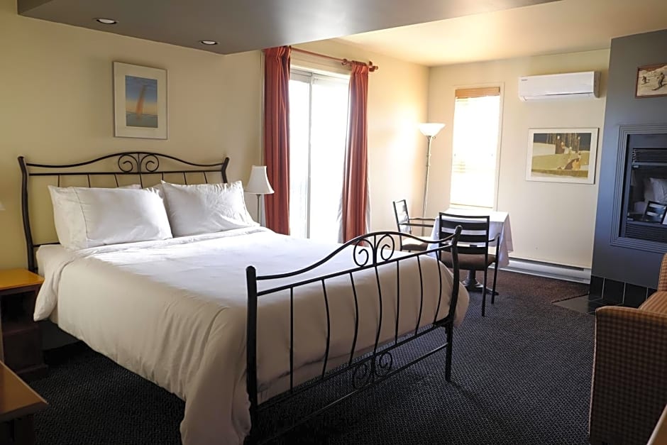 This room with 1 queen bed features a fireplace, work desk and full bathroom with a bath and a shower. Please note, this room does not offer air conditioning.