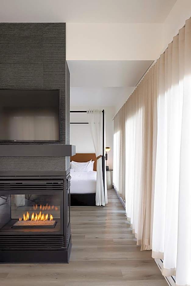 This suite features a kitchenette, 2 large patio doors and a balcony. It includes a double-sided fireplace that can be enjoyed from both the bedroom and living room. There are 2 LCD TVs and an iPod docking station.
