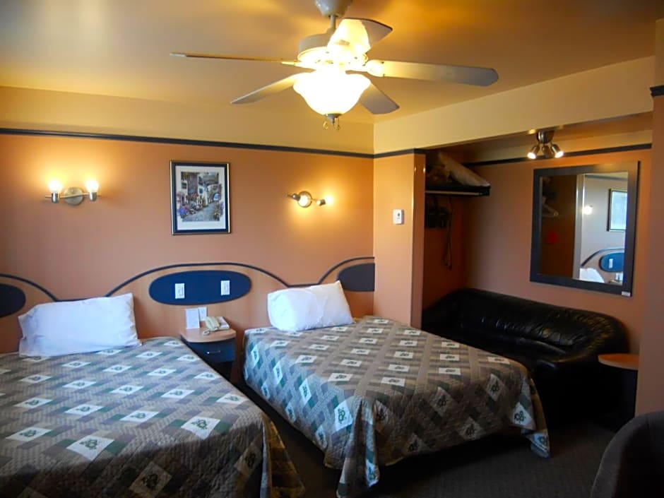At the Motel Normandie, guests can choose from a variety of room types. The Queen Room with Garden View offers a double occupancy with a queen size bed and a room size of 183 sqft. The Standard Twin Room is also a double occupancy room with two double beds and a slightly larger room size of 215 sqft. For larger groups, the Family Two-Bedroom Suite accommodates up to four adults with two queen size beds and a room size of 398 sqft. The Deluxe Queen Room with Garden View is another double occupancy option with a queen size bed and a room size of 194 sqft. All rooms are non-smoking.