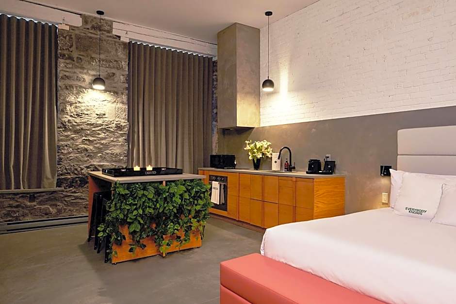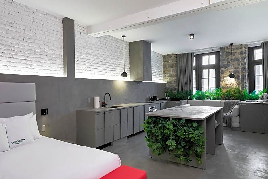 Space to stretch and unwind awaits in a choice of layouts: the Premium Loft Suite offers 797 square feet of living space and comes with a king-size bed, while the Studio spans 495 square feet with a king-size bed. For a bit more room to enjoy Montréal, the Loft apartment provides 646 square feet and a king-size bed. All three options accommodate 2 adults and 1 children.