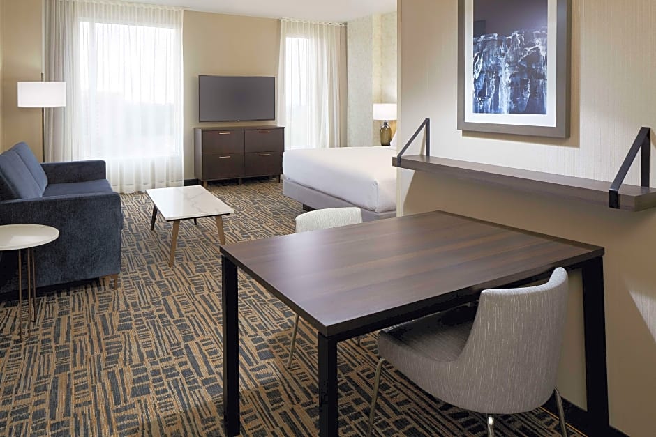The hotel offers various types of suites and studios. The suites include One-Bedroom Queen Suite with Two Queen Beds, King Studio Suite, King Suite, Queen Suite with Bath Tub, and Two-Bedroom Suite. The studios available include Queen Studio with Two Queen Beds. All rooms are non-smoking and have different sizes ranging from 474 sqft to 980 sqft. The occupancy varies from 4 adults and 3 children to 8 adults and 4 children. The rooms offer a variety of bed sizes including Queen and King beds as well as Sofa Beds.