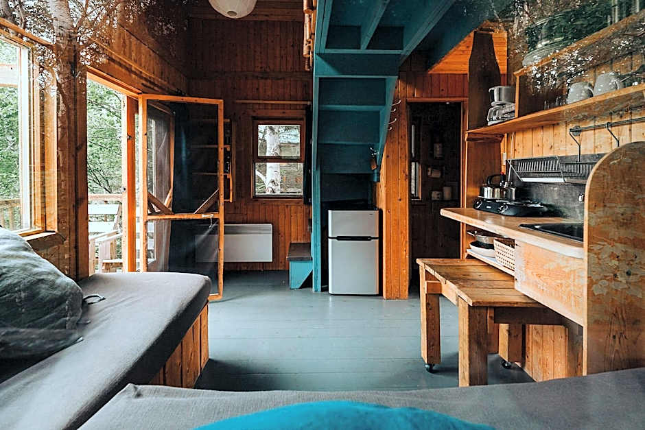 Nestled in the forest, this tree house includes a kitchen and terrace. Luggage can be delivered on site.