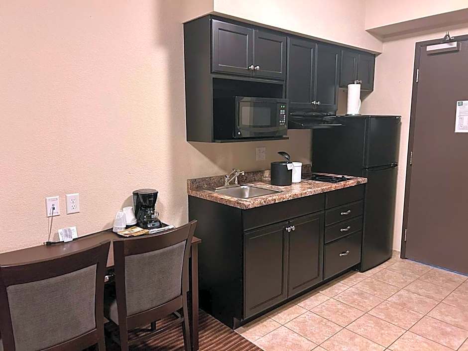 Room options include Suite, King Bed; Suite, 1 Bedroom, Queen Bed; and Standard Room, among others, with configurations that can suit couples or larger groups. Kitchenware and a kitchenette are available for guests who like a bit of home cooking on the road.
