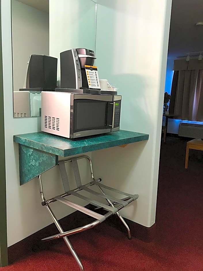 The room has a king bed and a trundle bed. This room comes with a fridge, microwave, cable TV, free local calls and air conditioning. A Keurig coffee machine is also included.