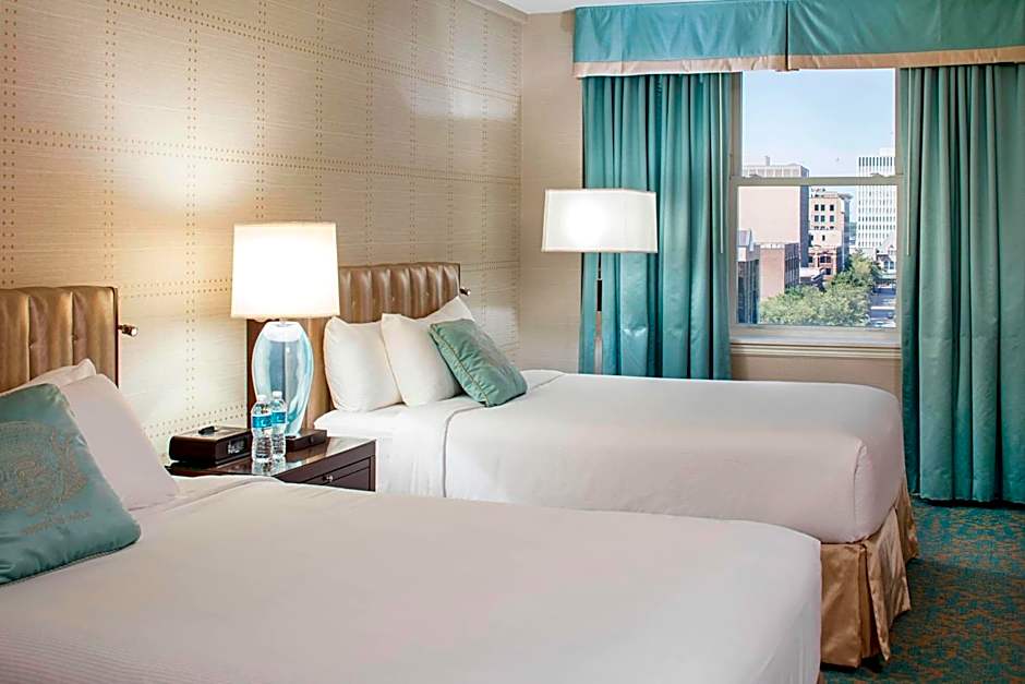 The Delta Hotels by Marriott Bessborough offers a variety of room types including King Rooms, Double Rooms with 2 Double Beds, Queen Rooms, Riverview Rooms with 1 King or 2 Double beds, and a Corner Guest Room with 2 Queen beds. The rooms are all non-smoking, have a room size of 215 sqft, and can accommodate 2 adults and 1 child. The Corner Guest Room is larger with a room size of 334 sqft. Additionally, there is a 1 Bedroom Suite available with 1 Queen bed, a sofa bed, and a city view, with a room size of 603 sqft.