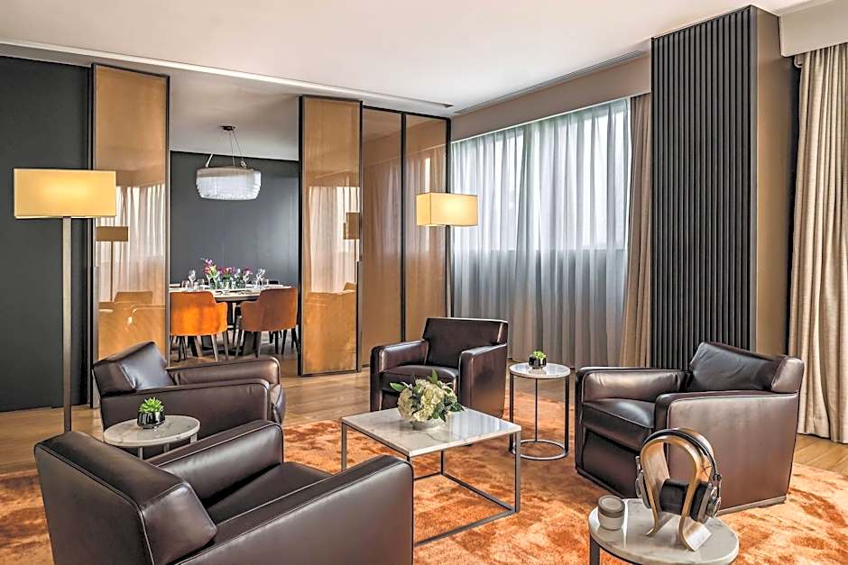 The elegant and contemporary superior suites feature a private alcove which leads to a cozy living room and a bedroom with a comfortable king size bed. It also offers an ample walk-in closet and quality furniture. The bathroom is adorned in luminous white Navona travertine, and offers a large shower and an impressive free-standing black granite bathtub. Size of the suite can vary from 80 to 102 square yards.