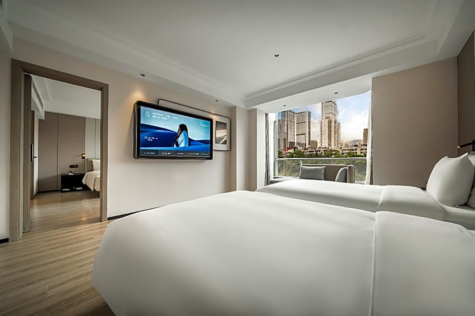Located in Chengdu, the hotel is about from the city center, with the address at No. 8, Wangping Binhe Road, placing guests near the Taikoo Li Riverside area.