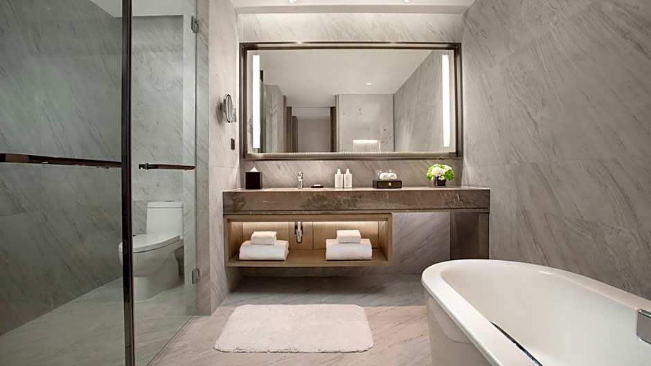 The hot tub is the standout feature of this suite. Featuring free toiletries and bathrobes, this suite includes a private bathroom with a walk-in shower, a bath and a hairdryer. The suite features air conditioning, soundproof walls, a mini-bar, executive lounge access, as well as a TV with cable channels. The unit has 1 bed.