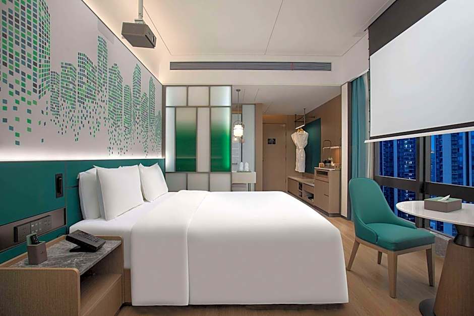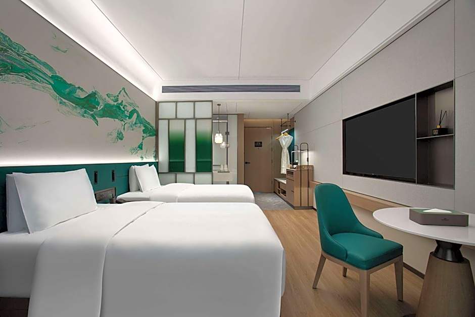 Room options in Zhuhai's Xiangzhou District span a diverse lineup: Deluxe Rooms with a King Bed or with two Twin Beds, Superior Rooms with two Twins or with a King Bed, and a King Room with a Bathtub. For extra space, the Superior Suite combines a King Bed with a Bathtub, adding a touch of spa-like comfort to the stay.