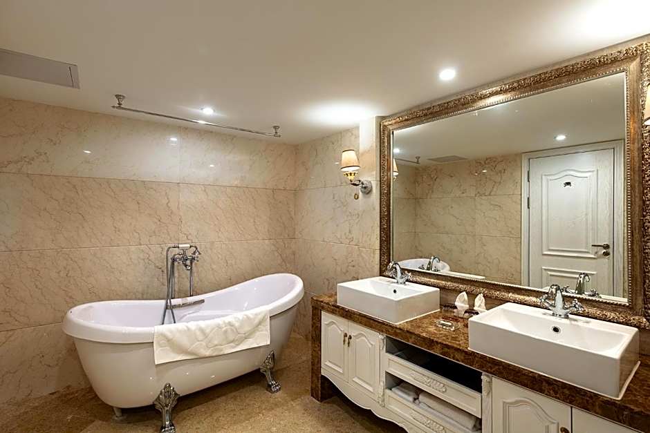 Inside, a thoughtful lineup of amenities ensures comfort and convenience: an indoor swimming pool, free Wifi, and room service, plus meeting and banquet facilities, a free airport shuttle, sauna, bar, and massage. Practical touches abound with a 24-hour front desk, wheelchair accessibility, elevator access, kids’ meals, and a tranquil garden.