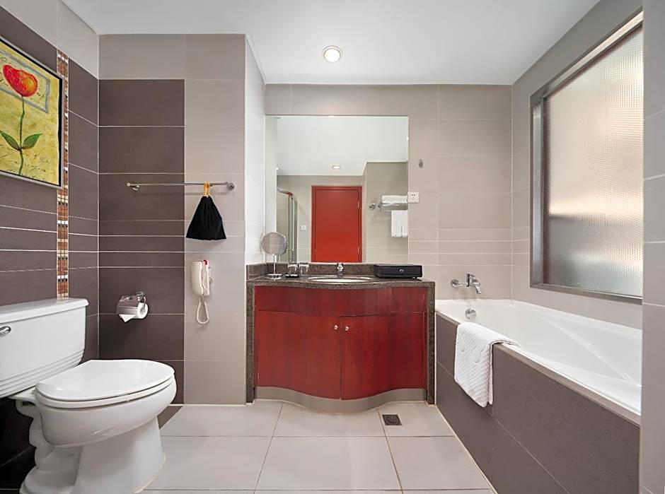 Guests will have a special experience as the suite provides a hot tub. The spacious suite features 1 bedroom and 1 bathroom with a shower and free toiletries. This suite has a mini-bar, a tea and coffee maker, a TV and city views. The unit offers 1 bed.