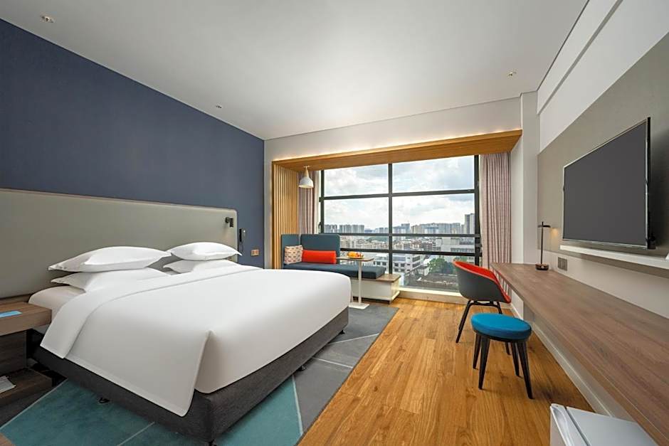 Holiday Inn Express Jiangmen Jianghai by IHG is a 4-star hotel in Jiangmen, China, tucked into the Jianghai district about 1.5mi from the city center. Address: No. 46 Donghai Road, Jianghai. Breakfast is offered, and an on-site restaurant adds convenience, with some rooms providing mountain views.