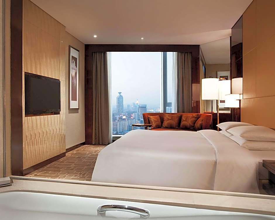 Bright, contemporary decor enlivens this 43-square-yard standard room, with its one king bed and inspiring city views. Homelike comforts lie in the spacious marble bath, complete with soaking tub, and modern amenities such as oversize work desk, MP3 docking station and complimentary wireless Internet.