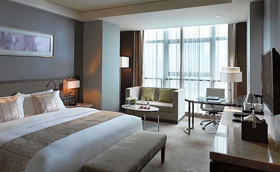Located on the highest floors, the room provides privileged views of Jinan and features a whirlpool bathtub. It has a king-sized bed, mini-bar, 42-inch flat-screen cable TV, in-room safe, work desk, seating area with a sofa and private bathroom with soft bathrobes and shower facilities.