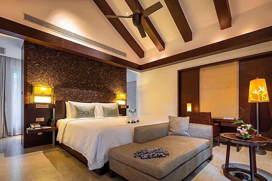 The entire stylish villa comes with a private garden, an private bathroom and a swimming pool. Offering sea views, villa comes with 1 bedroom and 1 pavilion. Decorated in the style of Tang and Han dynasties, villa features iPod touch, iPad and iHome. Free Wi-Fi is also provided.