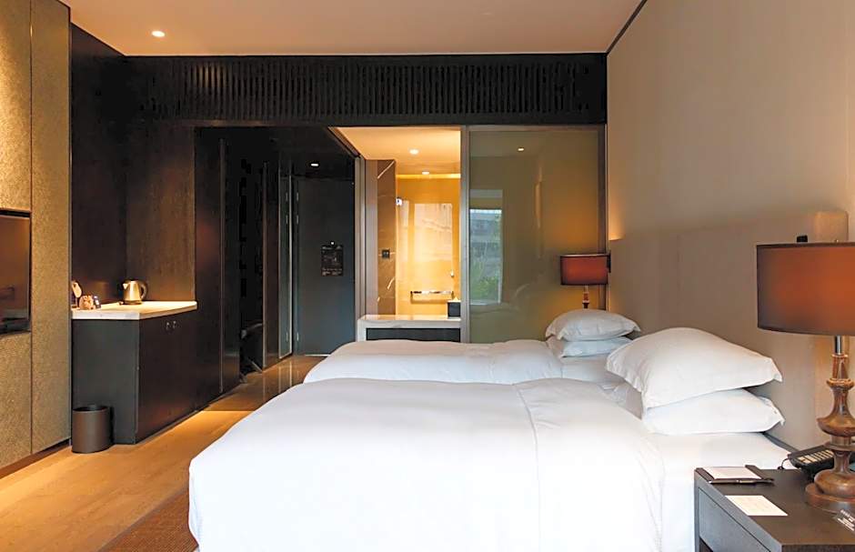 These 78-square-yard suites offer a spacious balcony with views of Dongqian Lake and Executive benefits. The private bathroom offers electric bidet and modern designs.