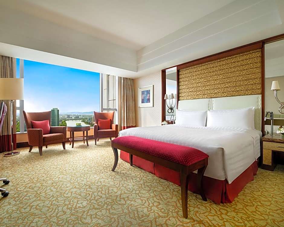 The Shangri-La Ningbo offers a variety of room types, including Deluxe King and Twin rooms, as well as Horizon King and Twin rooms with river views. The rooms range in size from 484 sqft to 969 sqft and can accommodate between 2 to 3 adults and 2 children. Some rooms allow smoking while others do not, and bed options include King size and Twin beds. The majority of the rooms are of the Double type.