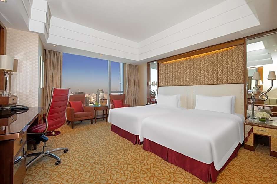 This twin room has a mini-bar, air conditioning and bathrobe. It has floor-to-ceiling windows providing sweeping views of the city skyline.