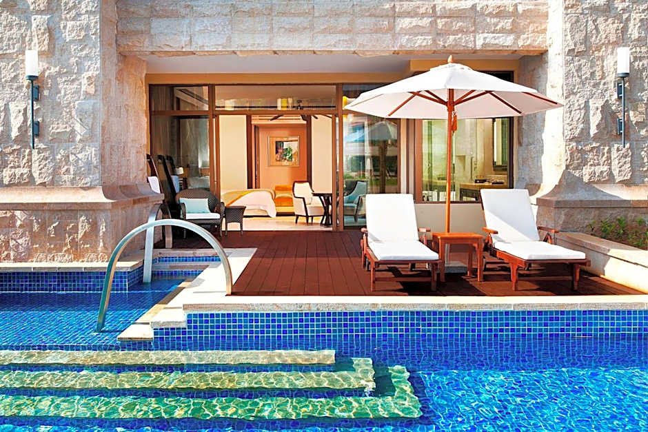 Guests at The St. Regis Sanya Yalong Bay Resort can enjoy a variety of leisure amenities during their stay. They can spend their time at the water park, private pool, and beachfront, which offer relaxation and fun. The resort also features an outdoor swimming pool, with a separate kids' pool for younger guests to enjoy.