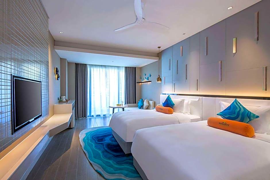 The Wingate by Wyndham Sanya Luhuitou hotel offers a variety of rooms including suites and doubles. The rooms vary in size from 484 sqft to 915 sqft. Smoking is not allowed in any of the rooms. The rooms can accommodate 2 adults and 1 child, with some rooms able to accommodate up to 3 children. The beds in the rooms range from king size beds to double beds and twin beds. Some rooms have a sofa bed available as well.
